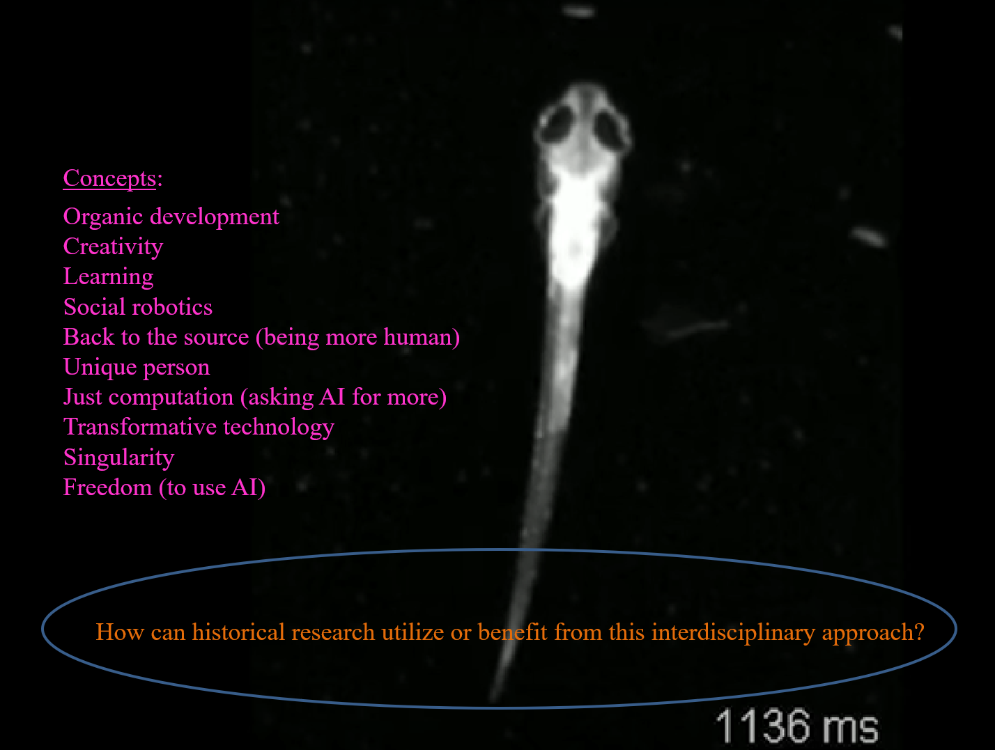 I gave a class today in my online Digital History course on the connection between neuroscience, AI, and history. My initial plan was to deliver it as the last class on Apr 10, to summarize the course while raising questions about the future of historical research considering the rise of AI. I also wanted to ponder how researchers in history can utilize interdisciplinary approaches such as this biological-technological one. However, both the timing of the class and its discussion took their own direction.