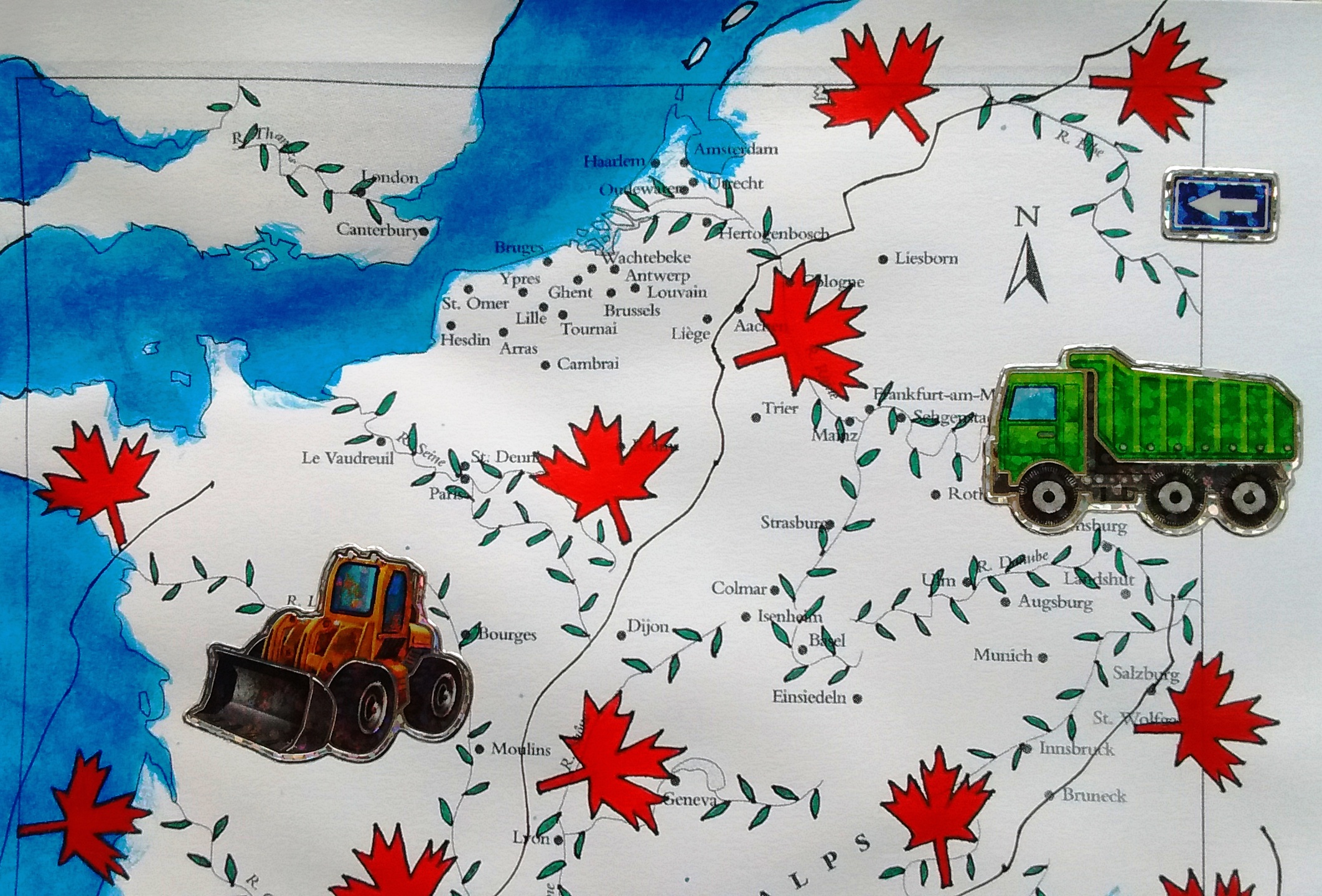 The arrangement of stickers and emojis on a sheet influences the thoughts the viewers have while looking at them. For example, “what car do I like most?” or “a grape cluster can fall just like a leaf,” and subsequently, “which one would hit the ground first?”